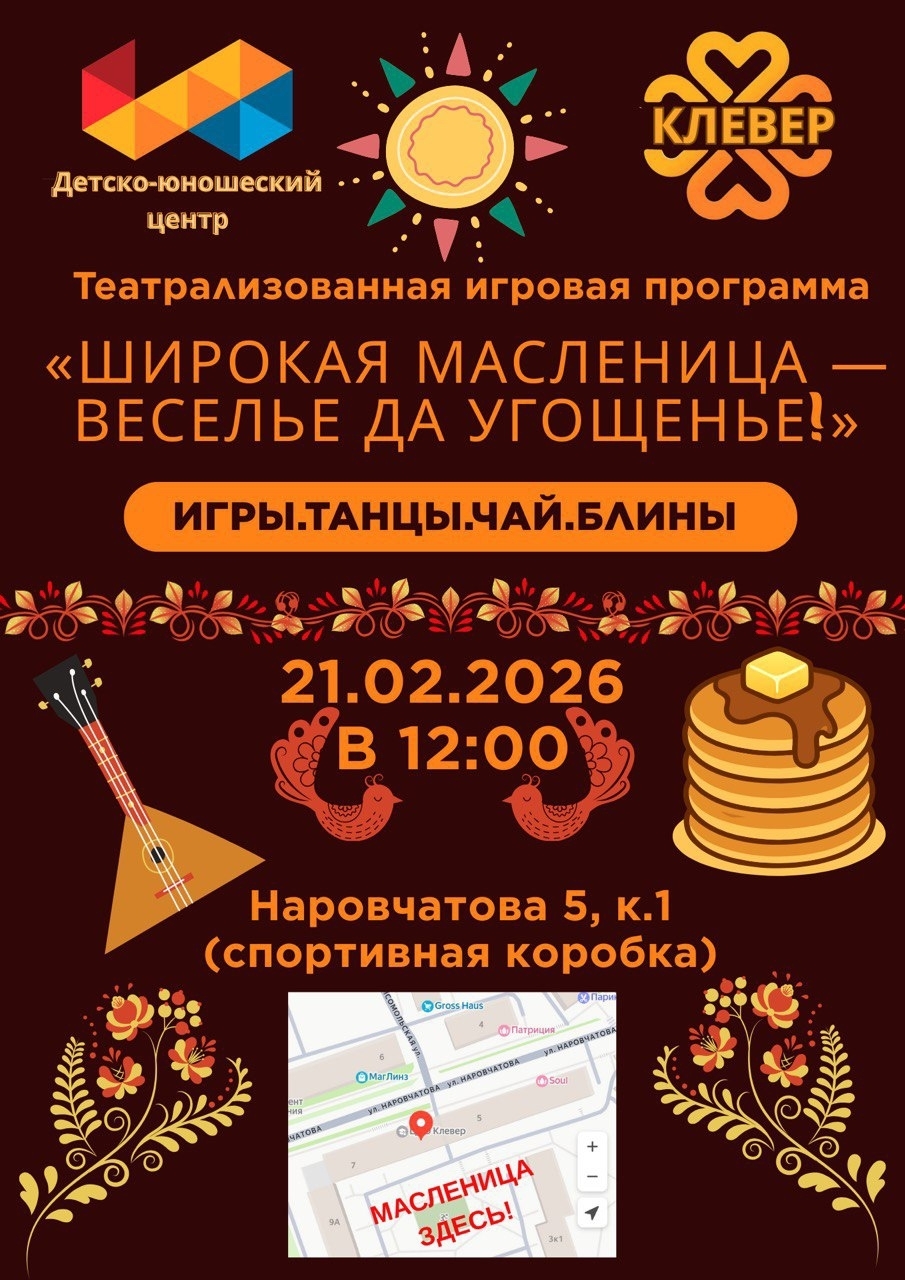 21 февраля 2026 года, в 12:00 Наровчатова, 5, к. 1 (спортивная коробка)